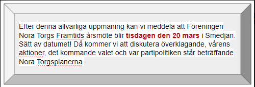 Kära medlemmar i Föreningen Nora Torgs Framtid